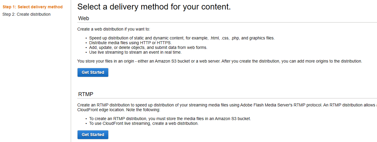 - Cloudfront로 이동하여 [Create Distribution] 선택