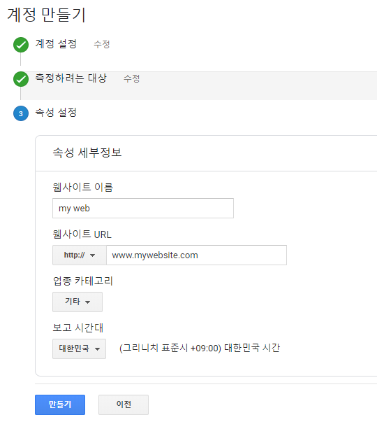 마지막으로 웹사이트 이름 및 URL을 입력합니다.