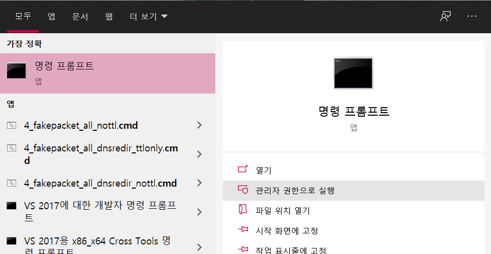 우선 cmd 창을 관리자 권한으로 open합니다.