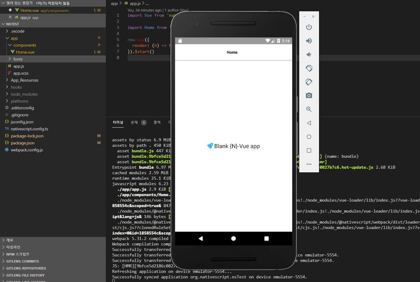 다음에는 코드를 수정해 가면서 nativescript 제공하는 기능을 사용해 보도록 하겠습니다.