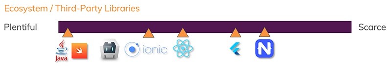 아이오닉이 가장 높고 플러터, Nativescript 순 이네요. (나머지는 React-native 와 Andorid(Java), IOS(Swift) 입니다.
